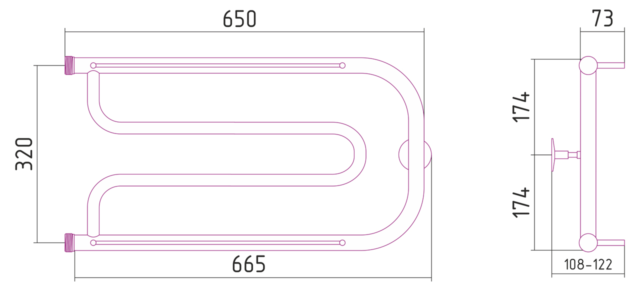 —Полотенцесушитель водяной Стилье ДУЭТ 2П 320х650 резьба-сгон 1"