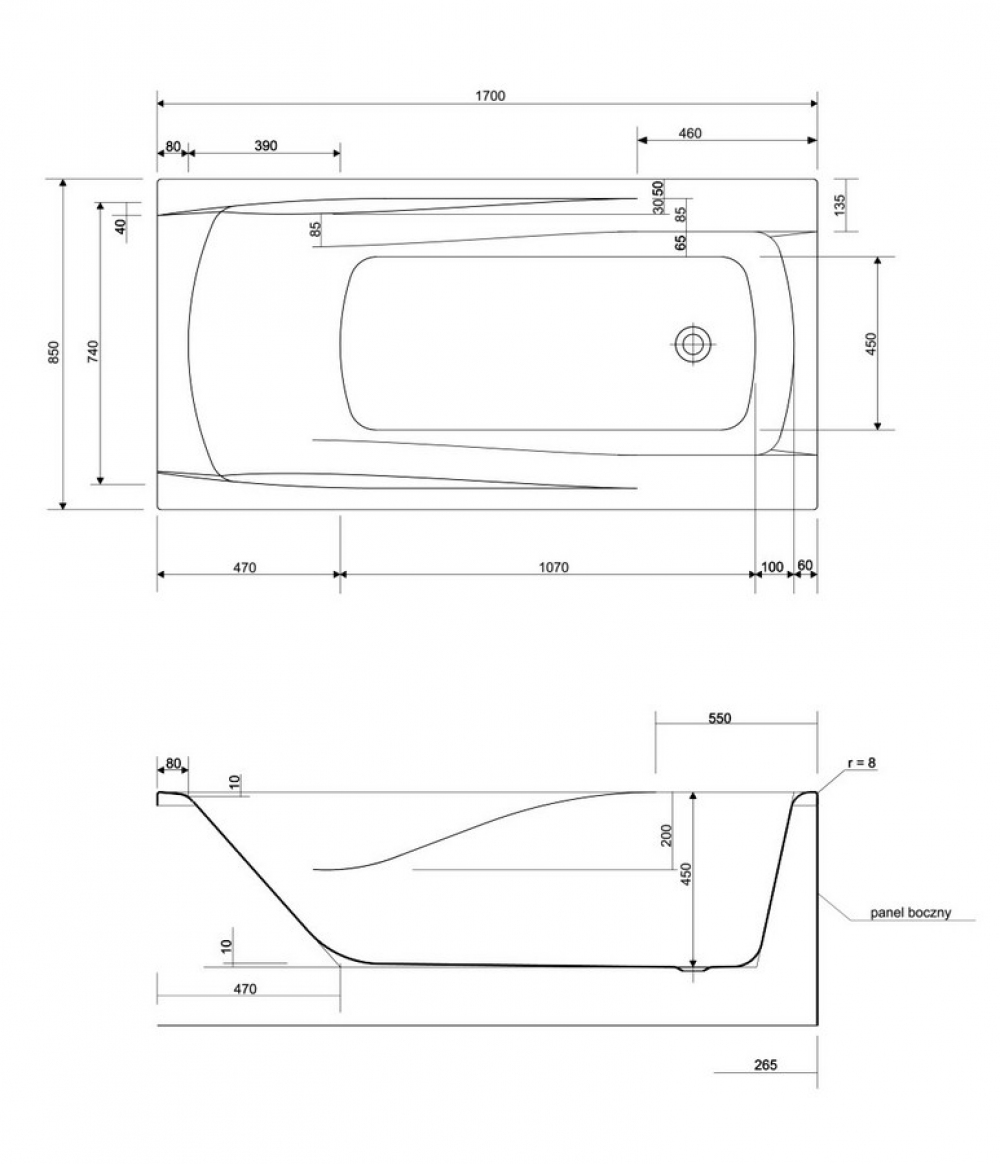 Ванна акриловая Cersanit ZEN 63355 170x85 см.