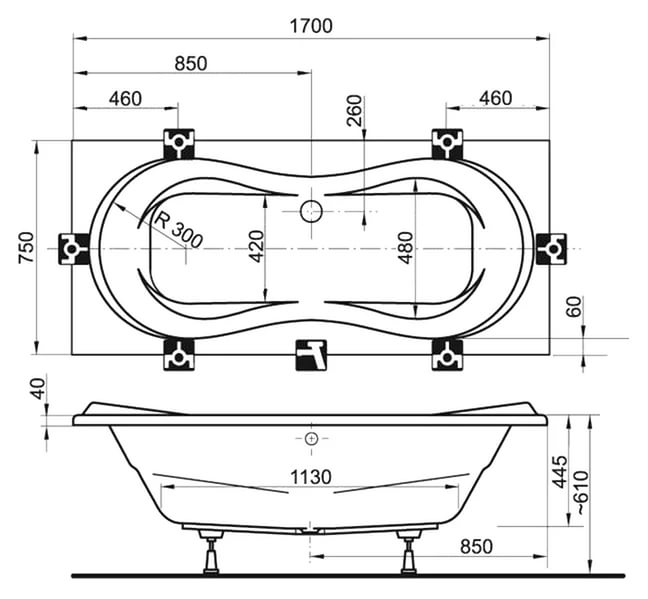 —Ванна акриловая прям. Ravak CAMPANULA CA01000000 170*75*61 см.